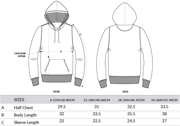 Set-in sleeve. Double-layered hood in single Jersey. Wider neck opening for easy dressing. Inside back neck tape in single Jersey. Self-fabric half-moon at back nec. Single needle topstitch at neckline and along hood opening. 1x1 rib at sleeve hem and bottom hem. Sleeve hem and bottom hem with twin-needle topstitch. Oeko-Tex certified. Vegan certified. Fairwear Foundation certified. GOTS certified.